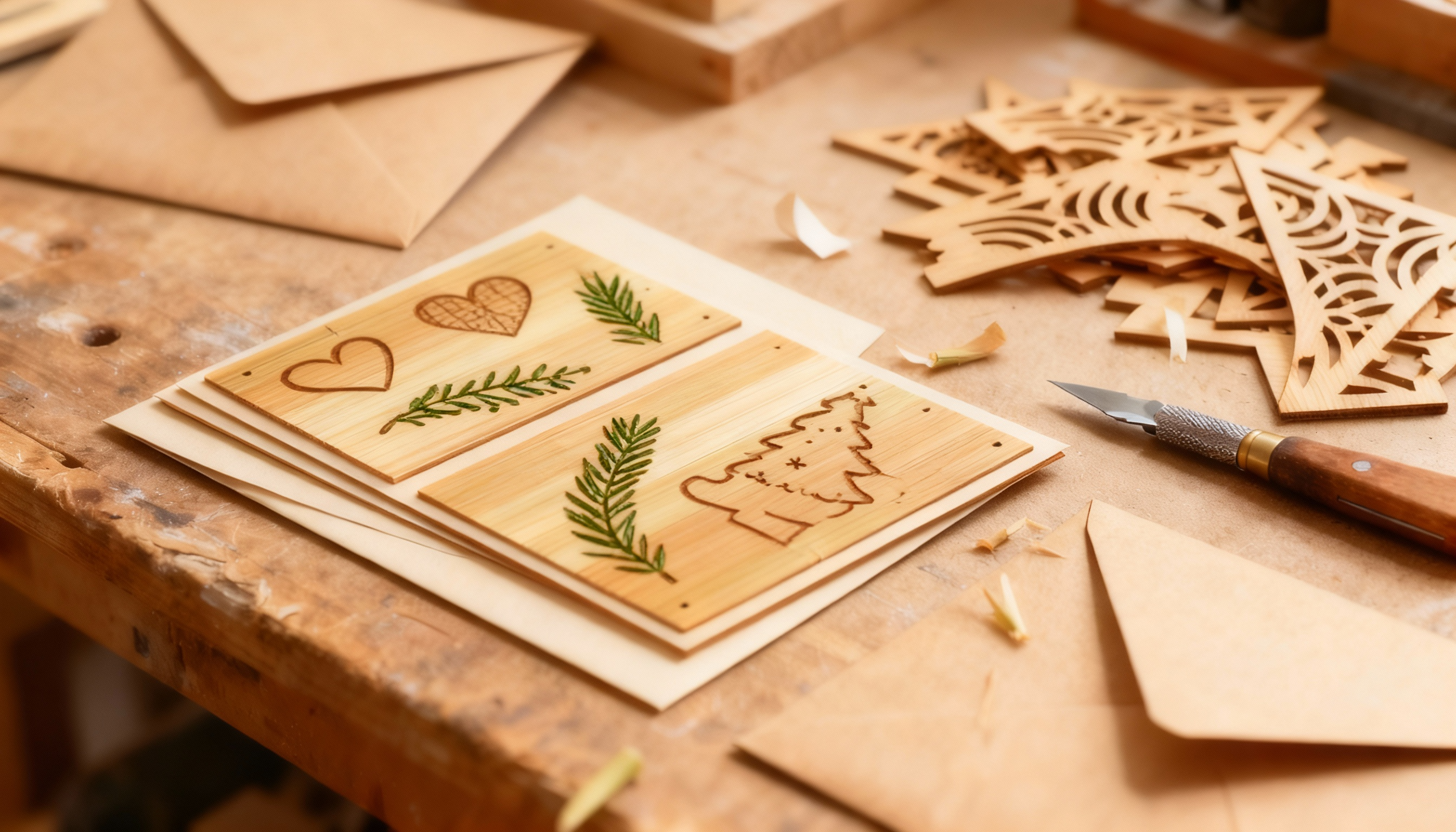Every card starts as a detailed design cut from premium bamboo, resulting in beautiful texture, depth, and a lasting keepsake quality.