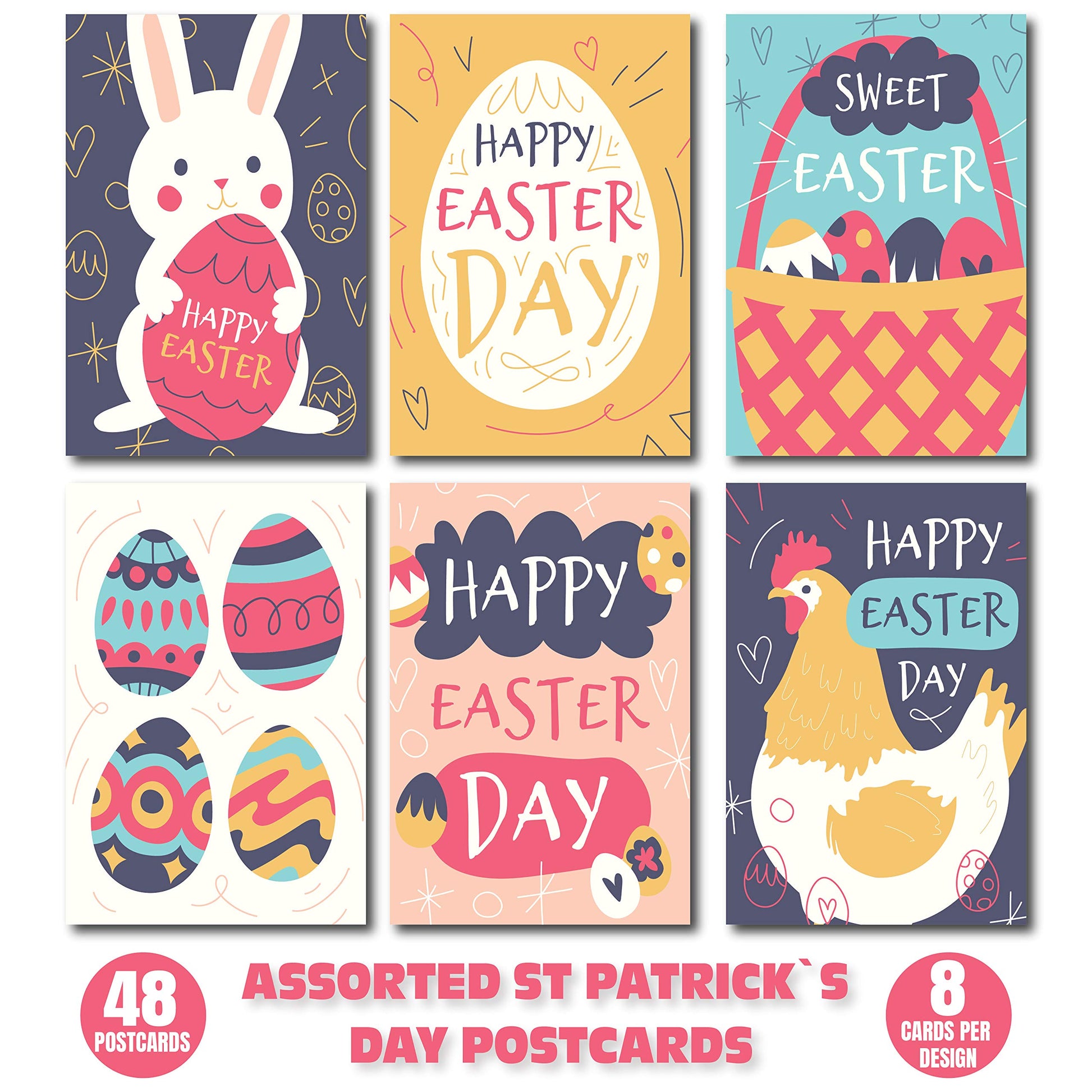Happy Easter Postcards - (48-Pack, 6 Different Designs)