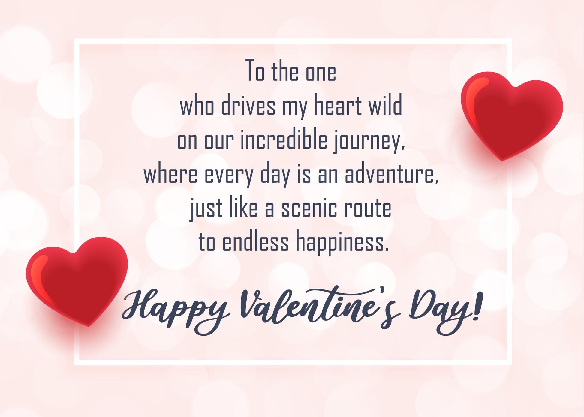 - Inside of the Card Reads - "To the one, who drives my heart wild on our incredible journey, where every day is an adventure, just like scenic route to endless happiness".