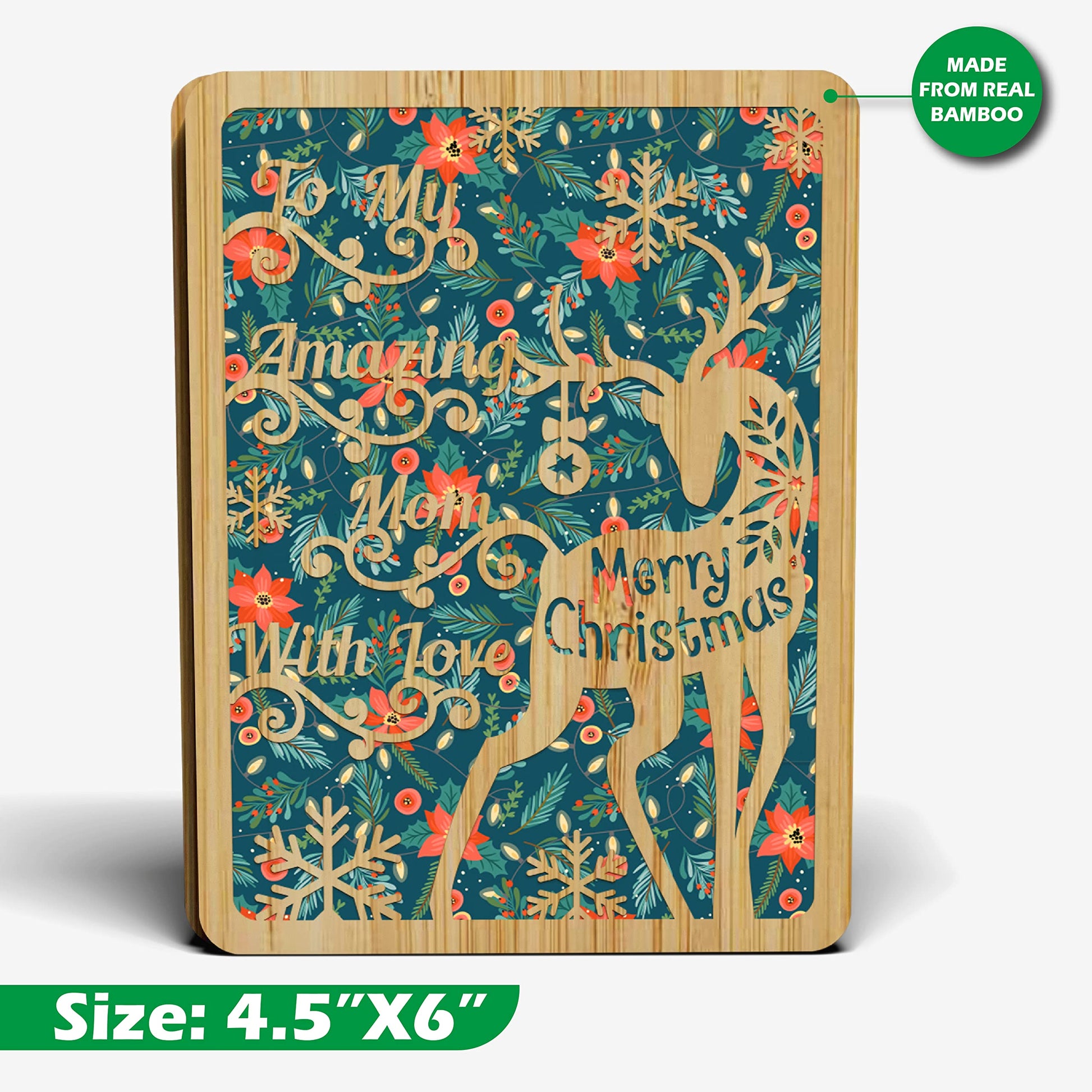 - Unique Christmas Card Mom - This Festive Christmas card is made from real bamboo. It will not only stand out from ordinary paper greeting cards but will remind her how much special she is to you.