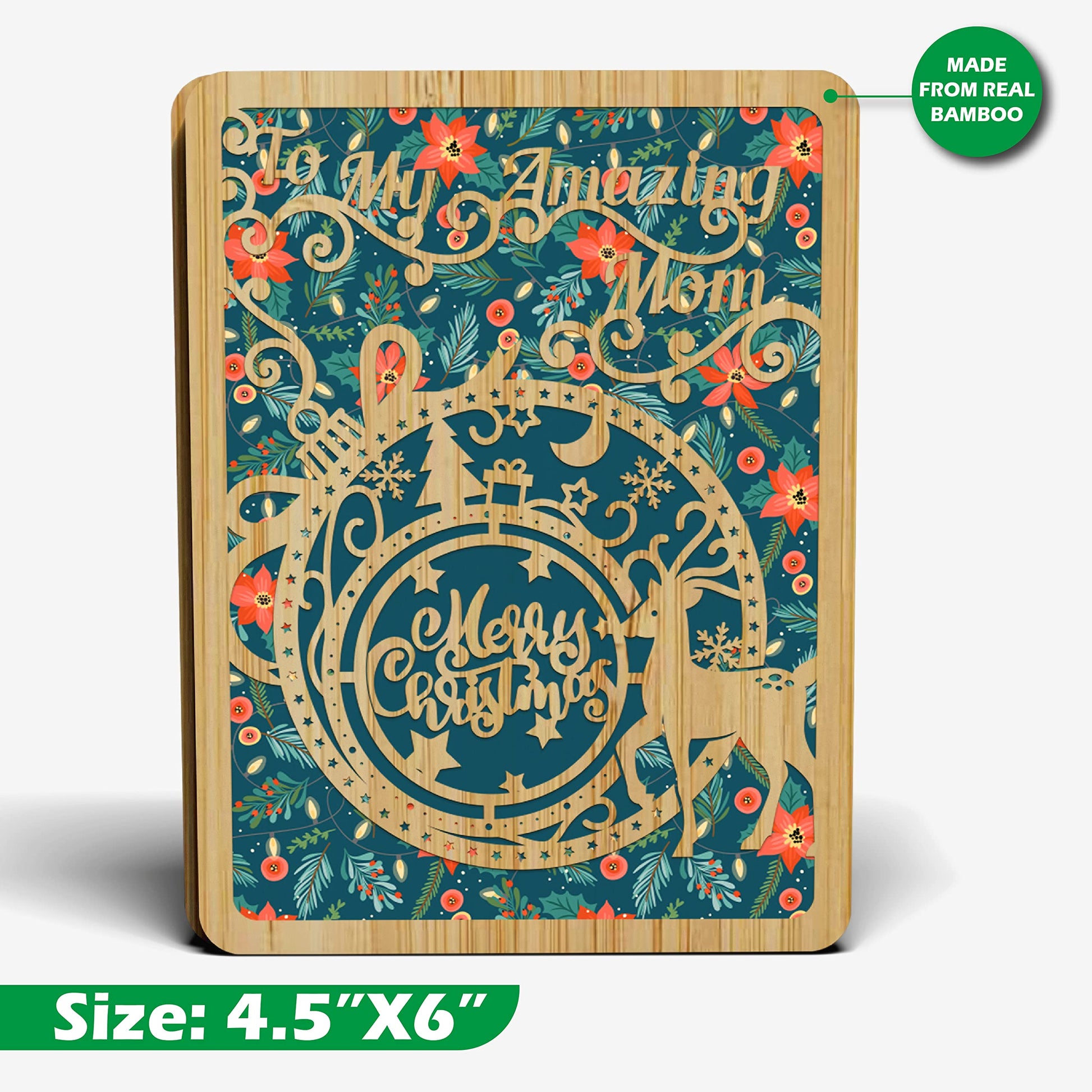 - Unique Christmas Card Mom - This Festive Christmas card is made from real bamboo. It will not only stand out from ordinary paper greeting cards but will remind her how much special she is to you.