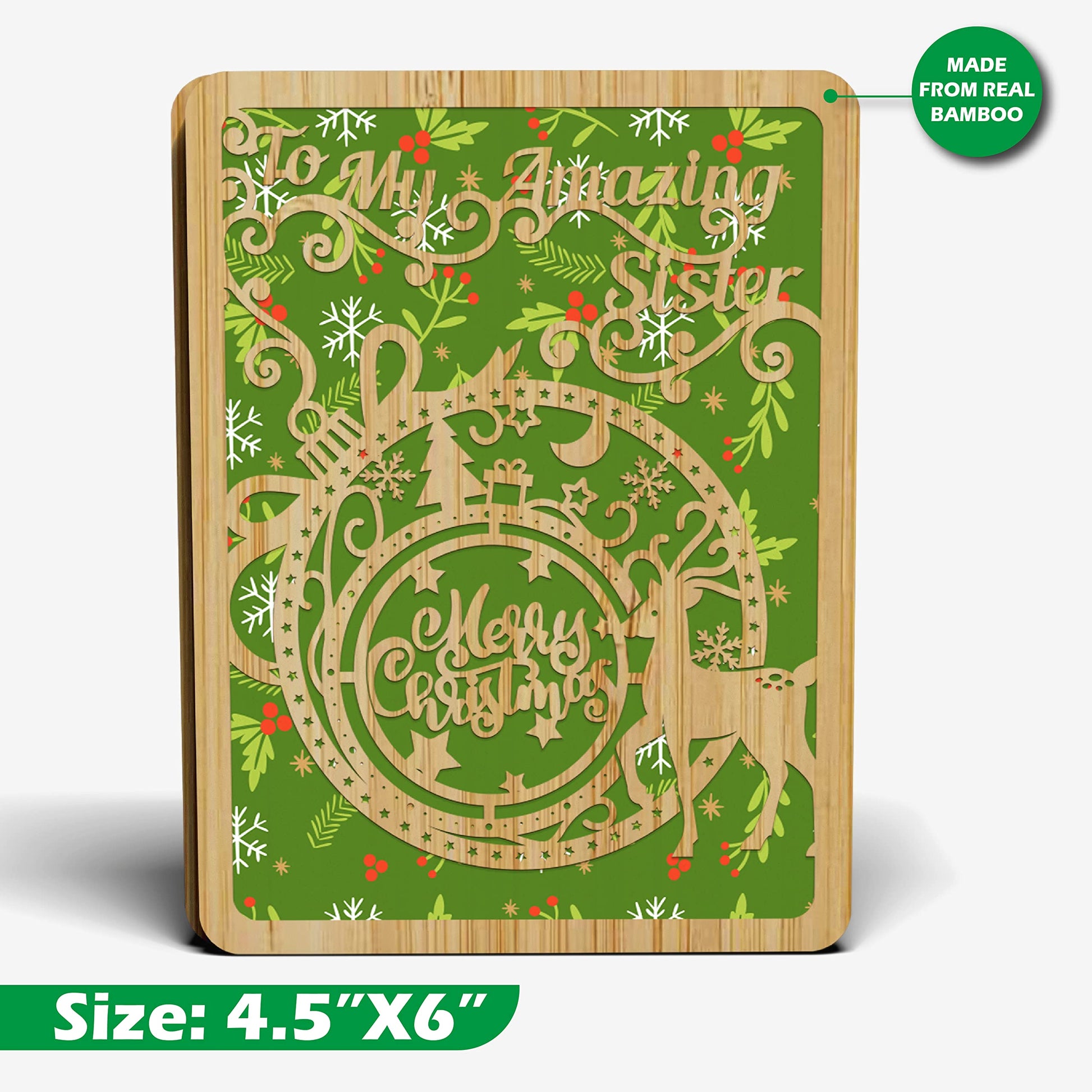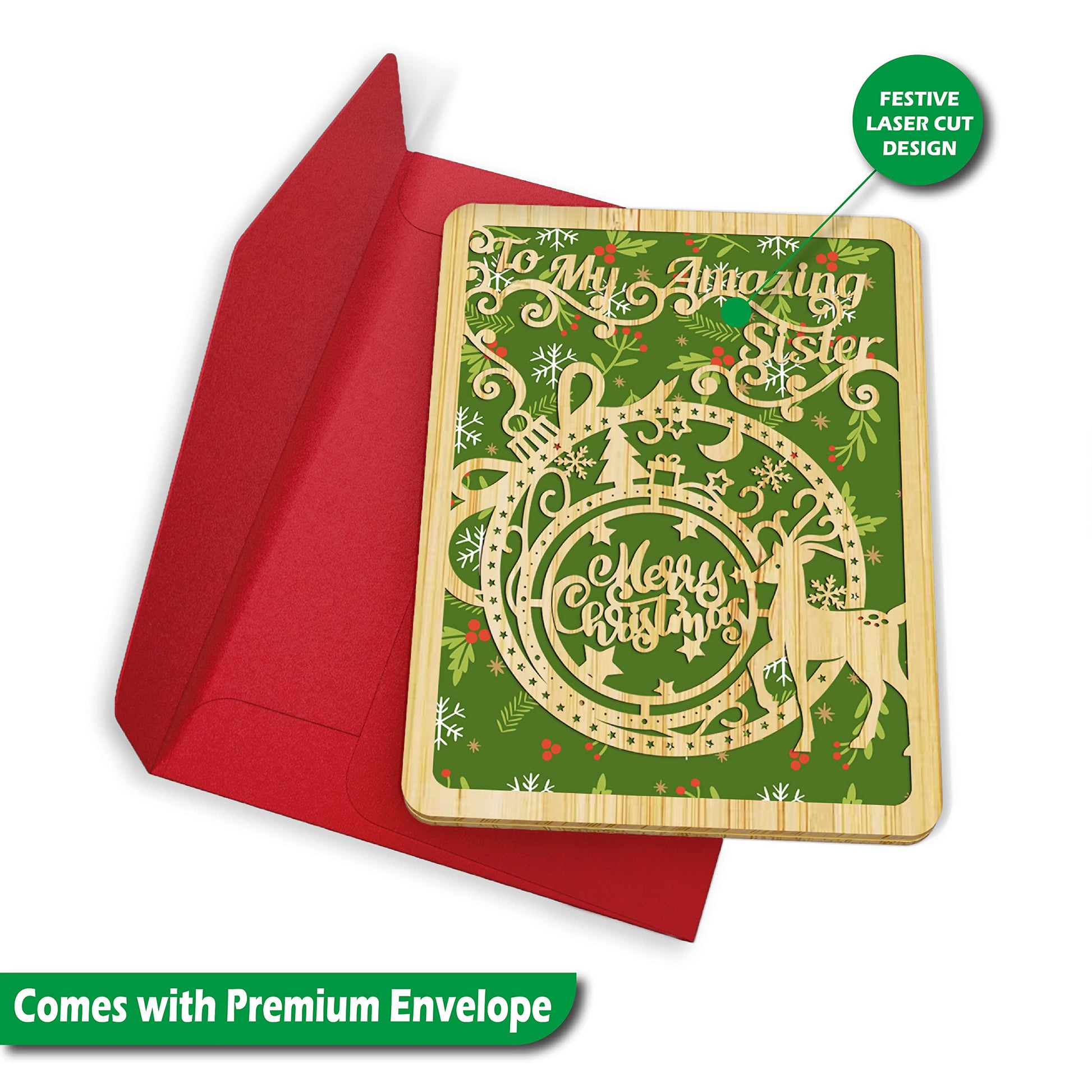 - Unique Christmas Card Sister - This Festive Christmas card is made from real bamboo. It will not only stand out from ordinary paper greeting cards but will remind her how special she is to you.