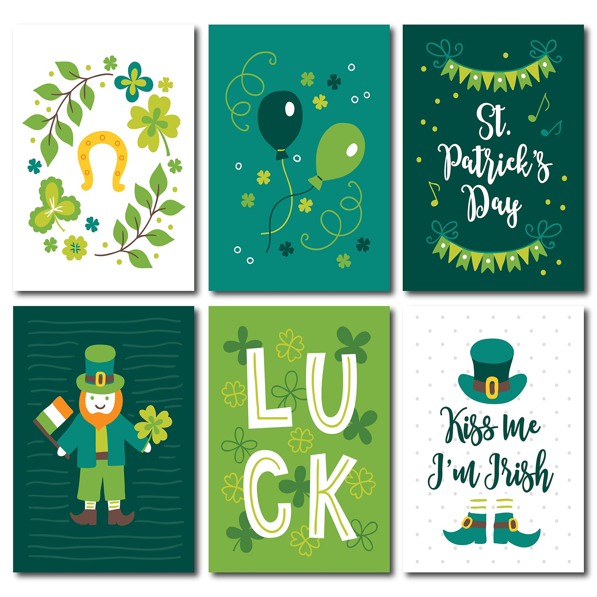 Happy St. Patrick's Day Postcards - (48-Pack, 6 Different Designs) Luck