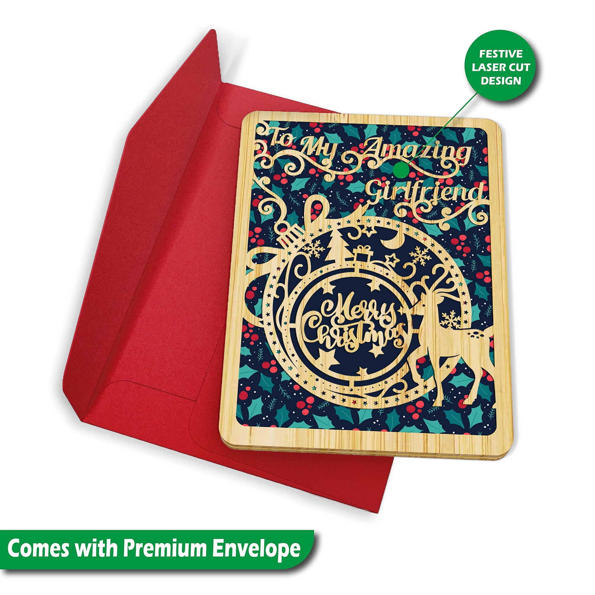 - Unique Christmas Card Girlfriend - This Festive Christmas card is made from real bamboo. It will not only stand out from ordinary paper greeting cards but will remind her how special she is to you.