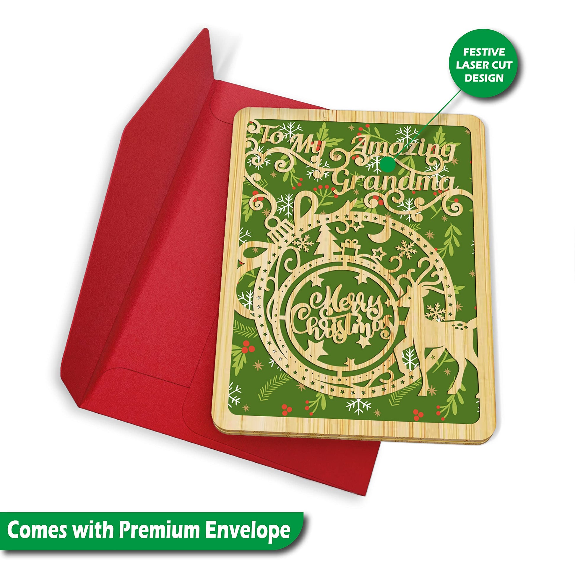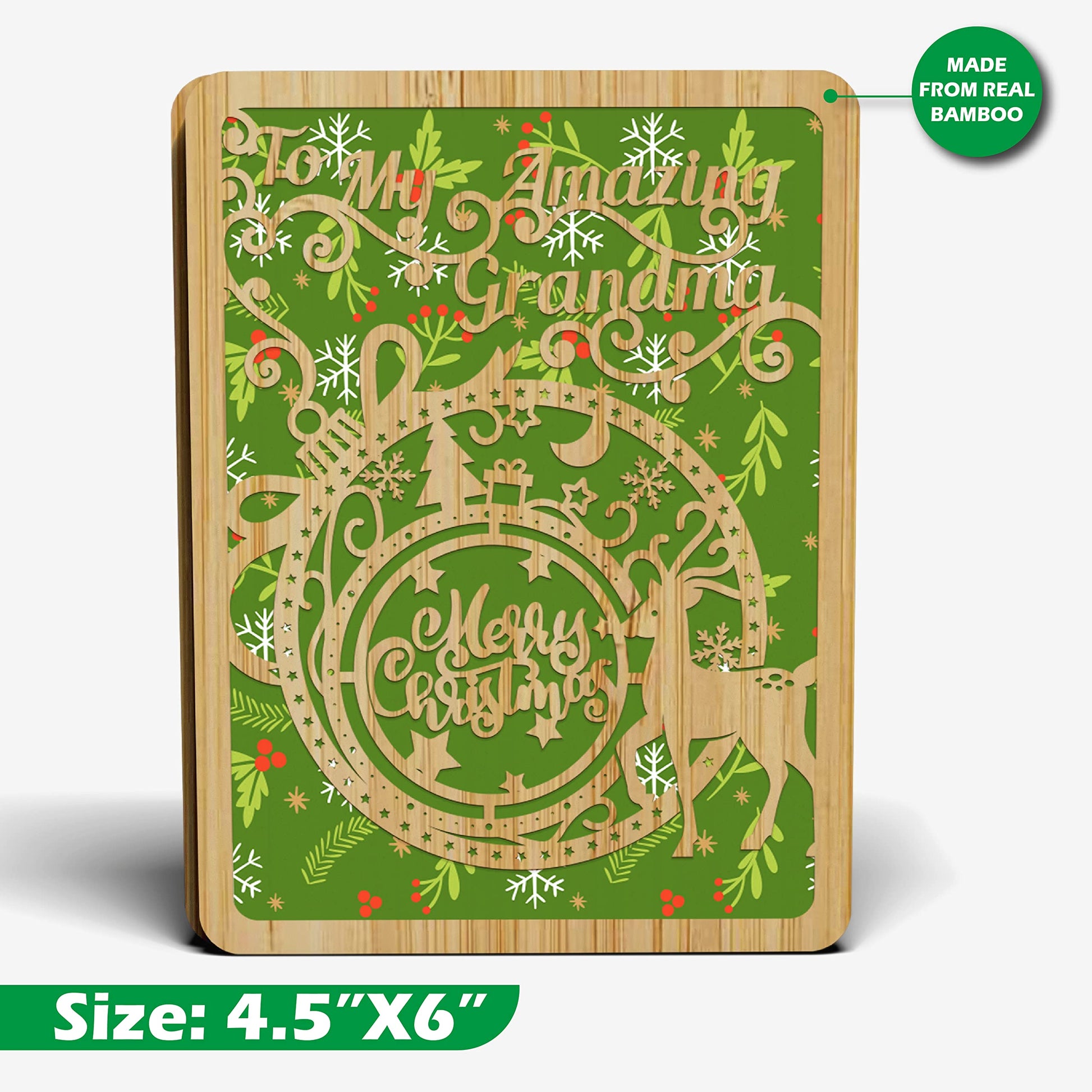 - Unique Christmas Card Grandma - This Festive Christmas card is made from real bamboo. It will not only stand out from ordinary paper greeting cards but will remind her how special she is to you.